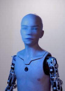 La foto è semplice: un mezzobusto di androide dalle fattezze di un ragazzo su sfondo neutro. Tuttavia lo scatto cattura un movimento e la testa risulta mossa. Grazie a questo mosso, l’immagine avvicina ancora di più la macchina all’uomo, alimentando la sensazione di Uncanny Valley, quel disagio percettivo che proviamo quando qualcosa è quasi umano, ma non del tutto. Allo stesso tempo, il mosso confonde i lineamenti dell’androide, costringendo il cervello di chi guarda a compensare le informazioni parziali nella foto creandone di ideali: in questo caso, la forma generale percepita è quella di una persona reale, non di una macchina. La miscela fra umano e artificiale è resa con efficacia, grazie anche a un uso del colore appropriato, semplice ma funzionale. Complimenti all’autore per aver ben espresso il tema del rapporto uomo-macchina, con una resa tecnica e contenutistica coerente e incisiva.